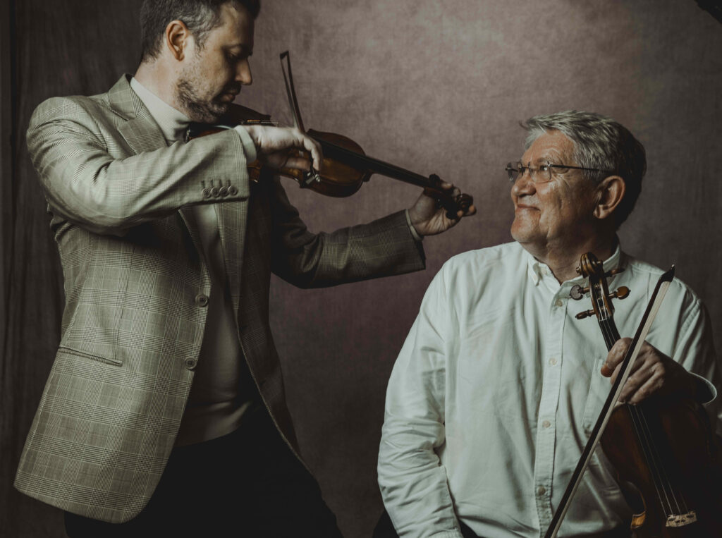Dos generaciones de profesores dedicados a la enseñanza del violín, con más de cinco décadas de experiencia docente.